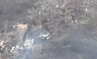 Snimak nije ceo, iseceno je poslednjih 15 sekundi, na kojima se vidi kako jedan ukrajinski vojnik pogadja tenk jevelinom i ovaj ostaje u plamenu. Ceo snimak moze da se vidi na twiteru....