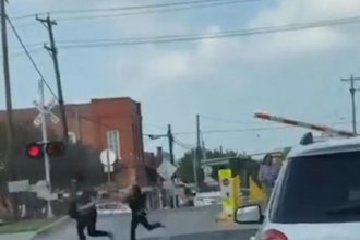 Na snimku se vide majka i ćerka kako u panici beže sa šina, a sledi ih otac koji se takođe spasava od nadolazećeg voza.