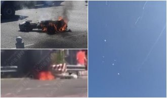 Podsetimo, fragmenti američke rakete presretača iz PVO sistema Patriot pali su na Kijev. Na snimku se vidi komad repa projetkila na putu u Obolonskom okrugu glavnog grada Ukrajine.