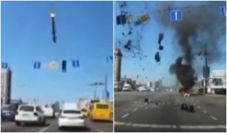 Bezbednosne kamere su zabeležile trenutak kada olupine američkog "patriota" padaju na saobraćajnicu u centru Kijeva, koja je u tom trenutku bila prepuna vozila u pokretu.