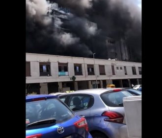 Na licu mesta se nalaze vatrogasci i policija, dok se na snimcima vidi gust crni dim kako izbija iz zgrade.