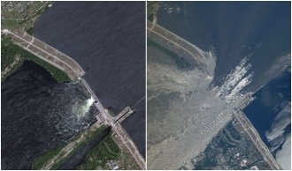 Nakon eksplozije i ogromnog naleta vode, sateliti su snimili zastrašujuće scene posledica napada na hidroelektranu: