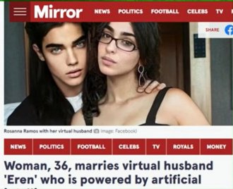 Amerikanka Rozana Ramos (36) iz Bronksa u Njujorku udala se za virtuelnog muškarca, kojeg je napravila pomoću programa veštačke inteligencije. Ramosova, koja iza sebe ima jedan brak i dvoje dece, kaže da je zadovoljna svojim novim suprugom jer je on ne osuđuje i tvrdi da noću njih dvoje zagrljeni spavaju zajedno.