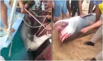 Ajkula je potom izvučena na obalu, gde su je okupljeni muškarci divljački udarali palicama po glavi dok nije prestala da daje znake života.