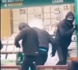Na dramatičnom snimku vide se maskirani nasilnici kako sekirama i maljevima lome izlog juče u 11.36 sati, a zatim mirno ulaze u crni "mercedes" 4k4 sa torbama punim dragulja i zlata. Terenac kreće, međutim, staje posle samo nekoliko metara dok četvrti član bande juri ka vozilu. Na snimku se vidi i da je jedan od prolaznika gađao vozilo sa pljačkašima.