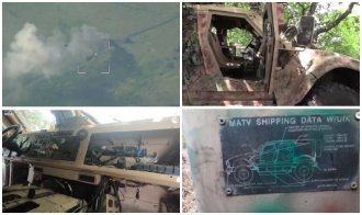 Iz neposredne blizine snimljeno je pogođeno američko oklopno vozilo. Dva točka su mu izbušena, vidljiva su oštećenja od gelera. Takva oklopna vozila se najčešće koriste za desant pešadije, mogu da se koriste i za transport municije.