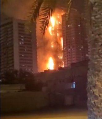 BREAKING: Residential high-rise building in Ajman, the United Arab Emirates is currently on fire.pic.twitter.com/QK8vubiKHZ