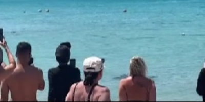 Na snimku koji je se pojavio na društvenim mrežama, a koji je zabeležio jedan srpski turista, vidi se mnoštvo kupača koji su u strahu istrčali iz mora, majke koje brižno drže decu za ruku da ne otrče u vodu, a mnogi su iznenađeno i bez reči posmatrali dva crna gorostasa koja plivaju u plićaku.