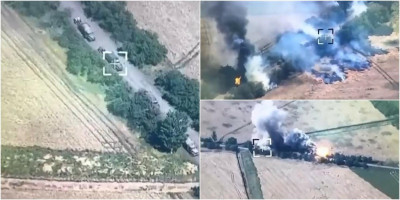 Ukrajinske snage su raznele rusko oklopno borbeno vozilo MTLB i oko šest kamiona, koji su prevozili artiljerijsko oružje, navodi se uz snimak.