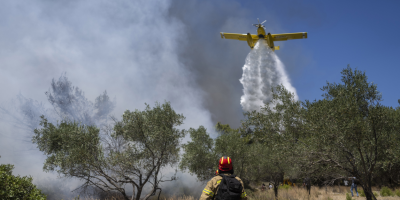 Kako prenosi evima.gr, letelica je pala u vatru dok je pokušavala da je ugasi.