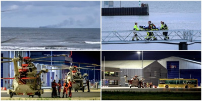 Jedan od scenarija je da će brod potonuti. Brod je već prilično nagnut. Nekoliko brodova za spasavanje je na putu i moraju da stave situaciju pod kontrolu ako teretni brod potone. Portparol obalske straže još ne može da kaže iz koje zemlje dolaze članovi posade.