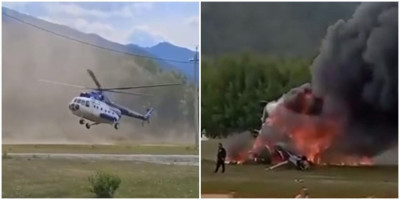 "Helikopter se zapalio prilikom sletanja u Tungur u Republici Altaj. Prema preliminarnim podacima, šest osoba je poginulo, a sedam je povređeno", saopštilo je ministarstvo.