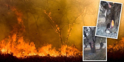 Šta će ostati od Rodosa? Pogledajte kako vatra guta stablo iznutra i ostavlja za sobom pustoš - prizori su jezivi, a još nije kraj (VIDEO)