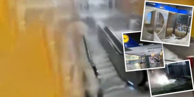 (VIDEO) Biblijske scene na aerodromu u Frankfurtu! Bujica uništava sve pred sobom, kamere zabeležile dramatičan prizor!