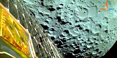 ISRO je juče objavila niz fotografija i snimaka snimljenih kamerama na letelici. Jedan pogled na Mesec iz ptičje perspektive snimljen je sa 70 kilometara iznad Mesečeve površine. Još jedna slika, snimljena 20. avgusta, nudi krupni plan Mesečevog prašnjavog sivog terena.