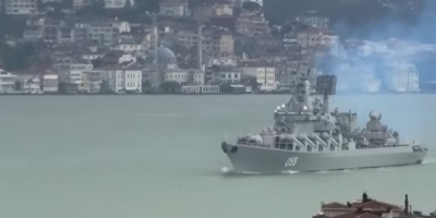 Na ukrajinskim Telegram kanalima pojavio se snimak na kome se vidi kako grupa manjih brodova vuče veliki vojni brod nagnut na jednu stranu.