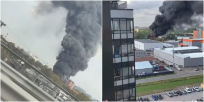 Veliki požar izbio je danas na severoistoku Sankt Peterburga, u hangaru površine 800 kvadratnih metara