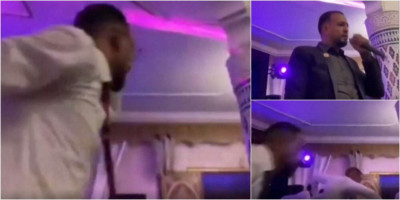 Snimak pokazuje pevača i muzičare tokom svadbe čiji se nastup odjednom pretvara u potpuni haos.