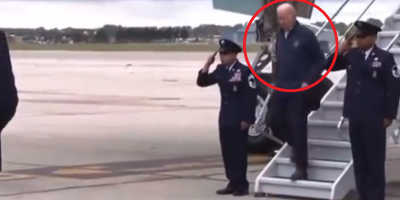 Joe Biden slips coming down the SHORT STAIRS. He was holding onto the railing for dear life.