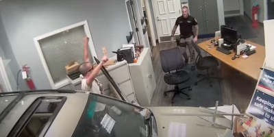 Policajci kažu da se, u trenutku kad je automobil uleteo u prostoriju policijske stanice, iz vozila čula pesma "Dobrodošli u džunglu", prenosi Bi-Bi-Si.