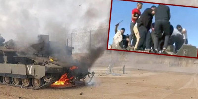 What appears to be an Israeli Merkava IV (or Merkava 3?) MBT destroyed during the ongoing Hamas led ground offensive
