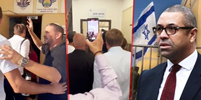 Britanski ministar spoljnih poslova Džejms Kleverli snimljen je kako utrčava u zgradu u Ofakimu, na jugu Izraela, tokom oglašavanja sirena za raketni napad Hamasa.