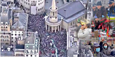 Protesters in London chanting in Arabic for the the armies of the Prophet Mohammed (PBUH) to attack Jews.