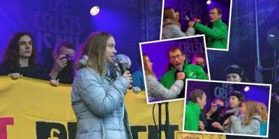 Nakon što su palestinske i avganistanske žene progovorile i Tunbergova je nastavila svoj govor, jedan muškarac je izašao na binu i rekao joj da je došao na miting zbog klimatskih demonstracija, a ne zbog političkog govora.