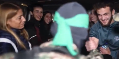 Na jednom od snimaka izraleski mladići koji ulaze u vozilo Crvenog krsta rukuju se sa maskiranim borcima Hamasa, devojka im maše, sve više deluje kao prijateljski rastanak nego oslobađanje iz zatočeništva.