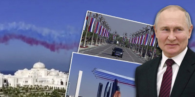 Nebo iznad Abu Dabija danas je u bojama ruske trobojke u čast posete predsednika Rusije Vladimira Putina.