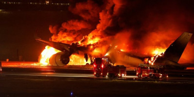 Avion kompanije "Japan airlines" zapalio se na pisti na aerodromu Haneda u Tokiju nakon mogućeg sudara sa avionom obalske straže, javila je japanska televizija Nipon.