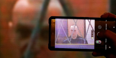 Navaljni (47), obučen u crnu zatvorsku uniformu i stojeći iza rešetaka u maloj praznoj prostoriji, izgledao je iscrpljeno, navela je britanska agencija.