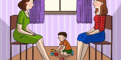 Pogledaj sliku. U prostoriji dve dame sede jedna naspram druge dok se dečak igra na podu. Pažljivo proučite sliku. Šta mislite ko je prava majka deteta? Ako ne možete da shvatite koji je to, odgovor ćete pronaći na dnu stranice.