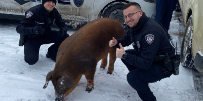 Policijska uprava Ričmonda objavila je na Instagramu da je svinja pobegla iz prikolice u Ričmondu i neko vreme provela uživajući u zimskom vremenu i snegu.