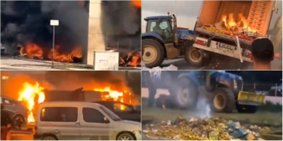 Francuski poljoprivrednici nastavili su danas proteste blokadom auto-puteva i bacanjem sanduka sa uvezenim proizvodima, a iz Klermon l'Eroa u blizini Monpeljea stižu šokantni snimci!