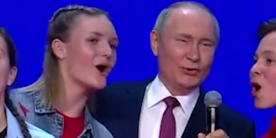 Deca su počela da pevaju himnu na sceni, a ruski lider je naizmenično davao mikrofon učesnicima, a potom se i sam pridružio horu dečijih glasova rečima "moćna volja, velika slava".