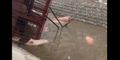 Mnoge svinje su beznadežno tražile pomoć, ali su zbog svoje kilaže bile preteške da bi se "izvukle" bez mašina.Vozač nije mogao da izdrži njihovu težinu, pa su na kraju uklonjene iz vode uz pomoć bagera.