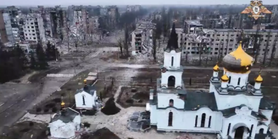 Snimak pokazuje da su okolne zgrade uništene, ali je avdejevski hram relativno netaknut.