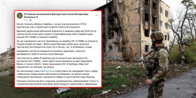 - Tokom masovne neprijateljske ofanzive na Avdejevku, 53. mehanizovana pešadijska brigada nije izgubila nijedan položaj na jugu. Informacije koje su iznesene milionskom auditorijumu potpuno diskredituju herojska dela naše brigade. Povlačenje sa položaja vojnika grupe Zenit pokrivale je i 53. brigada, čiji su borci ostali u položaju dok suprotno naređenje nije stiglo - navodi se u saopštenju ukrajinske vojske.