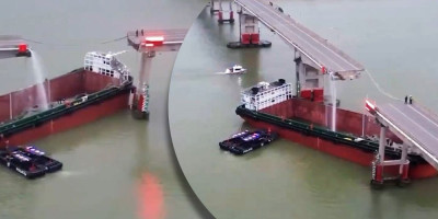 Na snimcima kineske televizije Si-Si-Ti-Vi (CCTV) vidi se prazna barža između dva stuba mosta, dok deo kolovoza nedostaje.