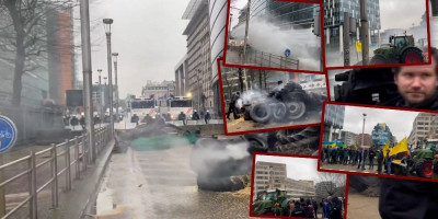 Agencija AP prenosi da su poljoprivrednici napravili betonske barijere i da su bodljikavim žicama okružili sedište Evropske unije, da su traktori okićeni zastavama i sa transparentima, kao i da neki od njih bacaju i pale gume ispred ulaza u zgradu EU, na šta je policija odgovorila vodenim topovima.