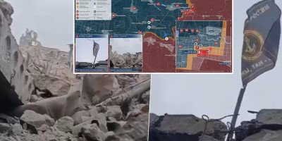 Na snimku podizanja zastave čuju se eksplozije i pucnjava što prema navodima portala Strana znači da se borbe još vode.