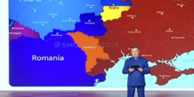 Zamenik predsednika Saveta bezbednosti Rusije, Dmitrij Medvedev, održao je govor ispred mape Ukrajine koja prikazuje zemlju kao okrnjenu teritoriju stisnutu u Poljsku, sa Rusijom koja ima punu kontrolu nad istočnom, južnom i obalom Crnog mora.