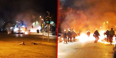 (VIDEO) Naoružane osobe sa kapuljačama napadaju! Grad u plamenu, molotovljevim koktelima gađaju policiju