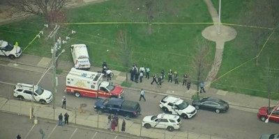 Snimci helikoptera iz parka Clara Muhammad Skuare prikazuje veliko mesto zločina. Mogu se videti kamioni sa hranom i šatori dovezeni za događaj.