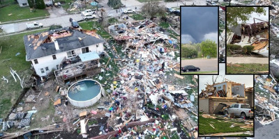 Fotografije na društvenim mrežama pokazuju da je mali grad Minden u Ajovi, oko 48,3 kilometra severoistočno od Omahe, takođe pretrpeo veliku štetu.