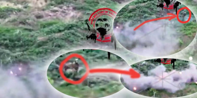 Dok se dron približavao vojniku, on je skinuo torbu sa ramena i njom udario dron, koji je eksplodirao. Vojnik je potom pobegao.