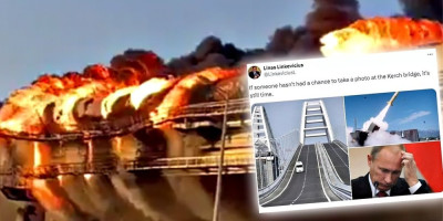 Linkevičijus je objavio kolaž sa slikom mosta i fotografijom lansiranja rakete. Slike je propratio natpisom: „Ako neko još nije imao priliku da se fotografiše na Krimskom mostu, još ima vremena“.