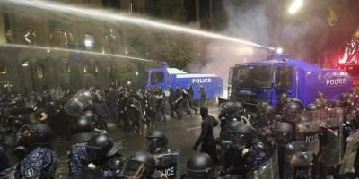 Gruzijske bezbednosne snage upotrebile su vodene topove, suzavac i šok bombe kako bi rasterala demonstrante ispred parlamenta tokom noći.