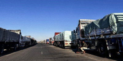 لحظة دخول شاحنات مساعدات إنسانية إلى قطاع غزة عبر معبر كرم أبو سالم و٤ شاحنات وقود